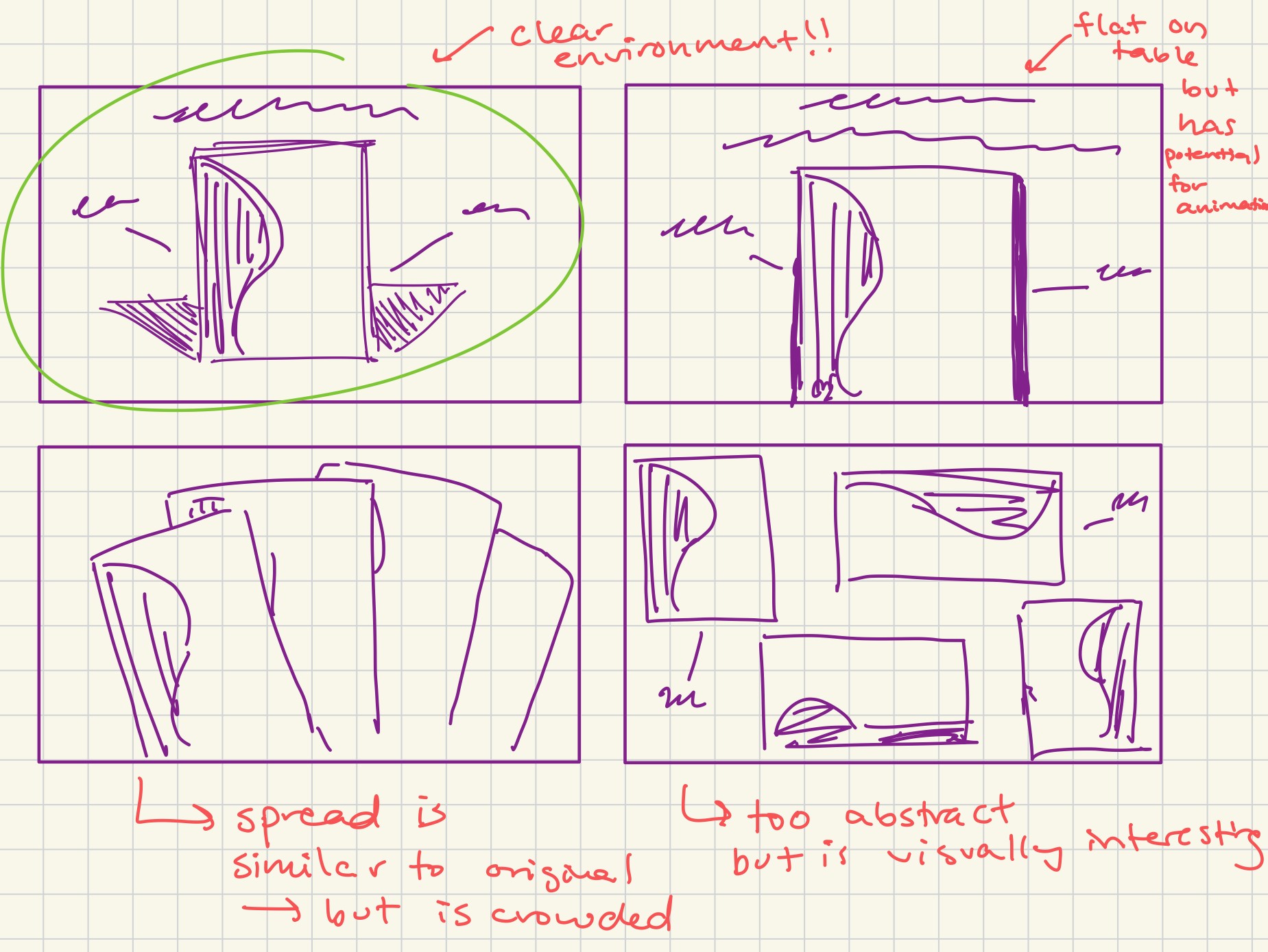 The current presentation lacks a clear visual narrative and immersive environment, causing the files to feel generic and blend together. Without strong visual cues or emphasis on sustainability, the thoughtful design elements and eco-conscious values are lost. Traditional small-text labeling further reduces impact and makes organization less intuitive, weakening the brand’s identity and diminishing the uniqueness of the products.