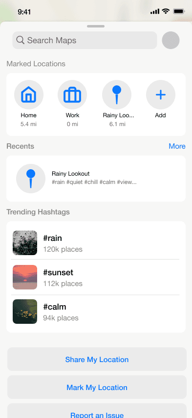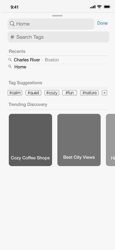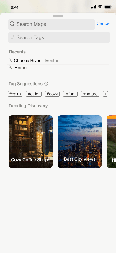 Tags: Add mood tags (e.g. #quiet, #cozy) to receive subtle, on-route detour prompts while driving