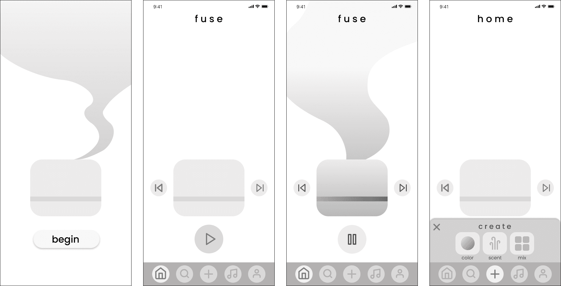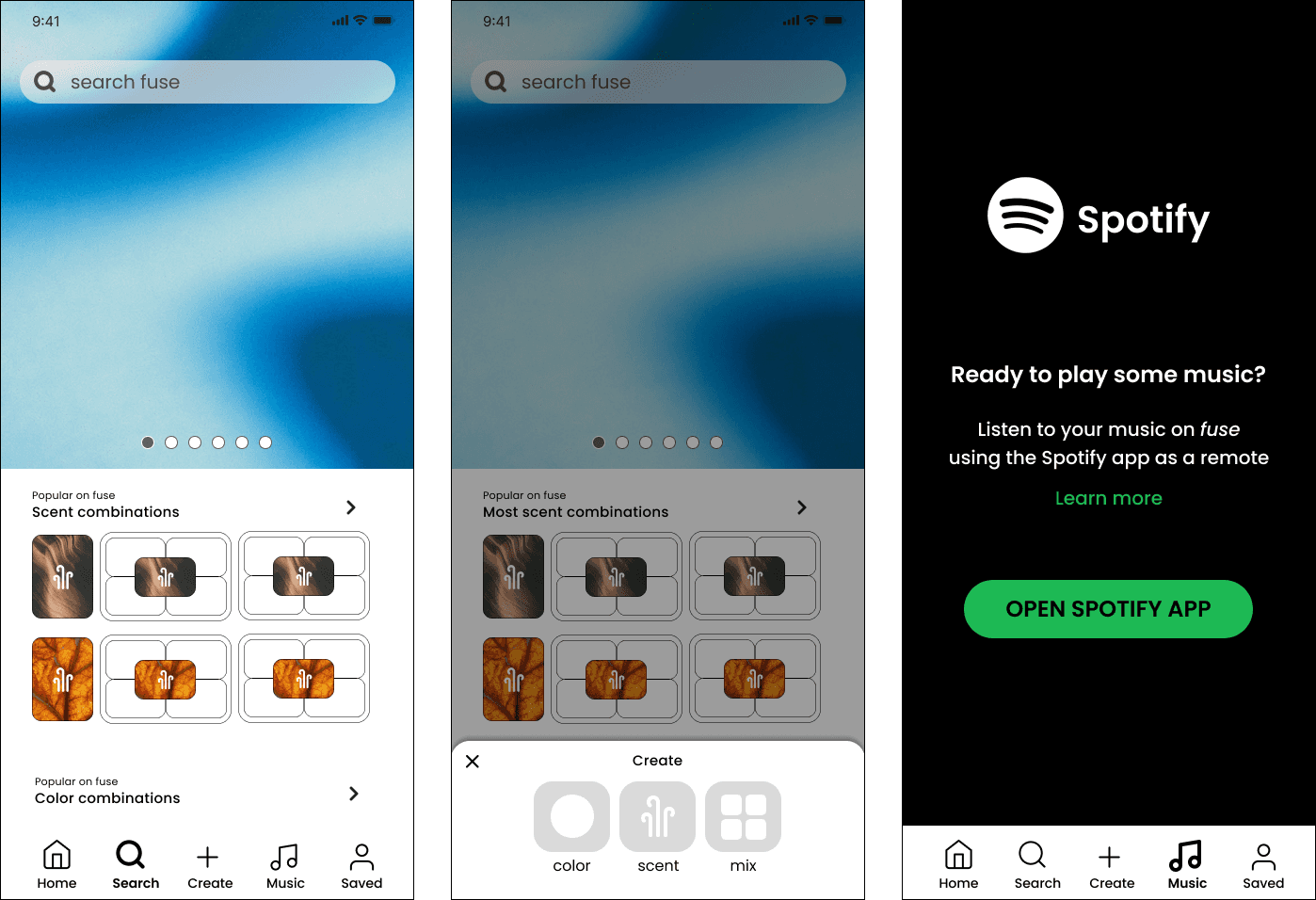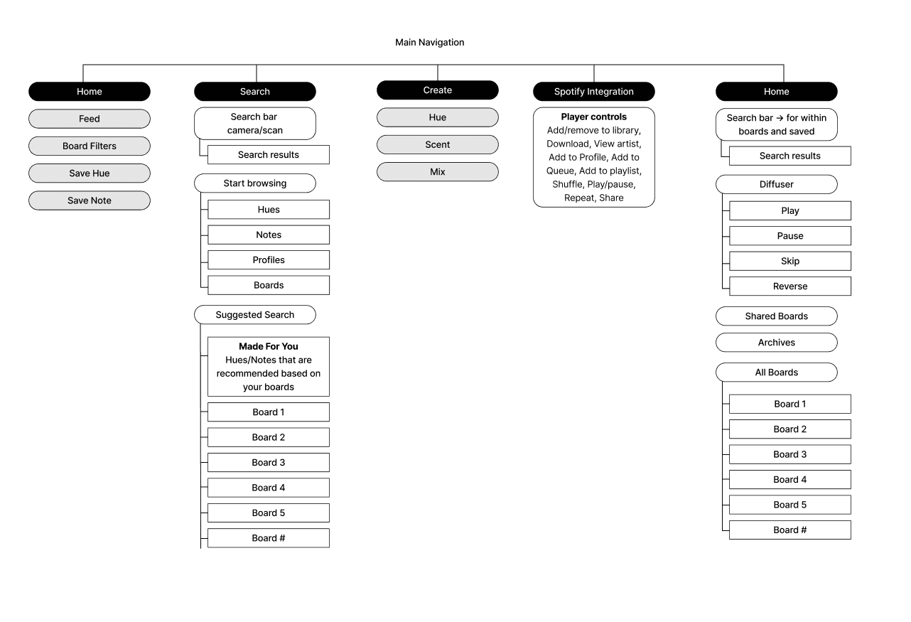 For this semester-long interactive design project, I designed Fuse, a mobile app that reimagines how people set moods and gather inspiration by combining visual mood boarding (like Pinterest) with sensory customization (like a diffuser). The concept emerged from user research around emotional regulation, aesthetic exploration, and multi-sensory experiences in digital spaces.