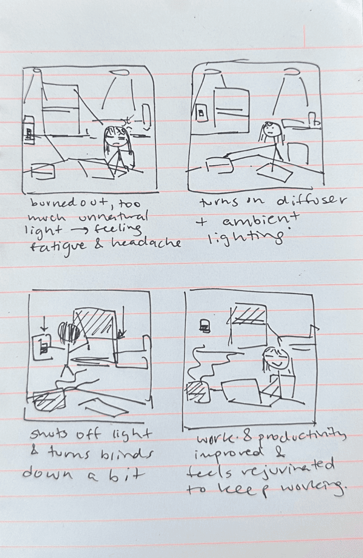 To deeply understand how users engage with mood and environment creation, I conducted semi-structured interviews with students who frequently use Pinterest, music, and diffusers for emotional regulation and creative ambiance.