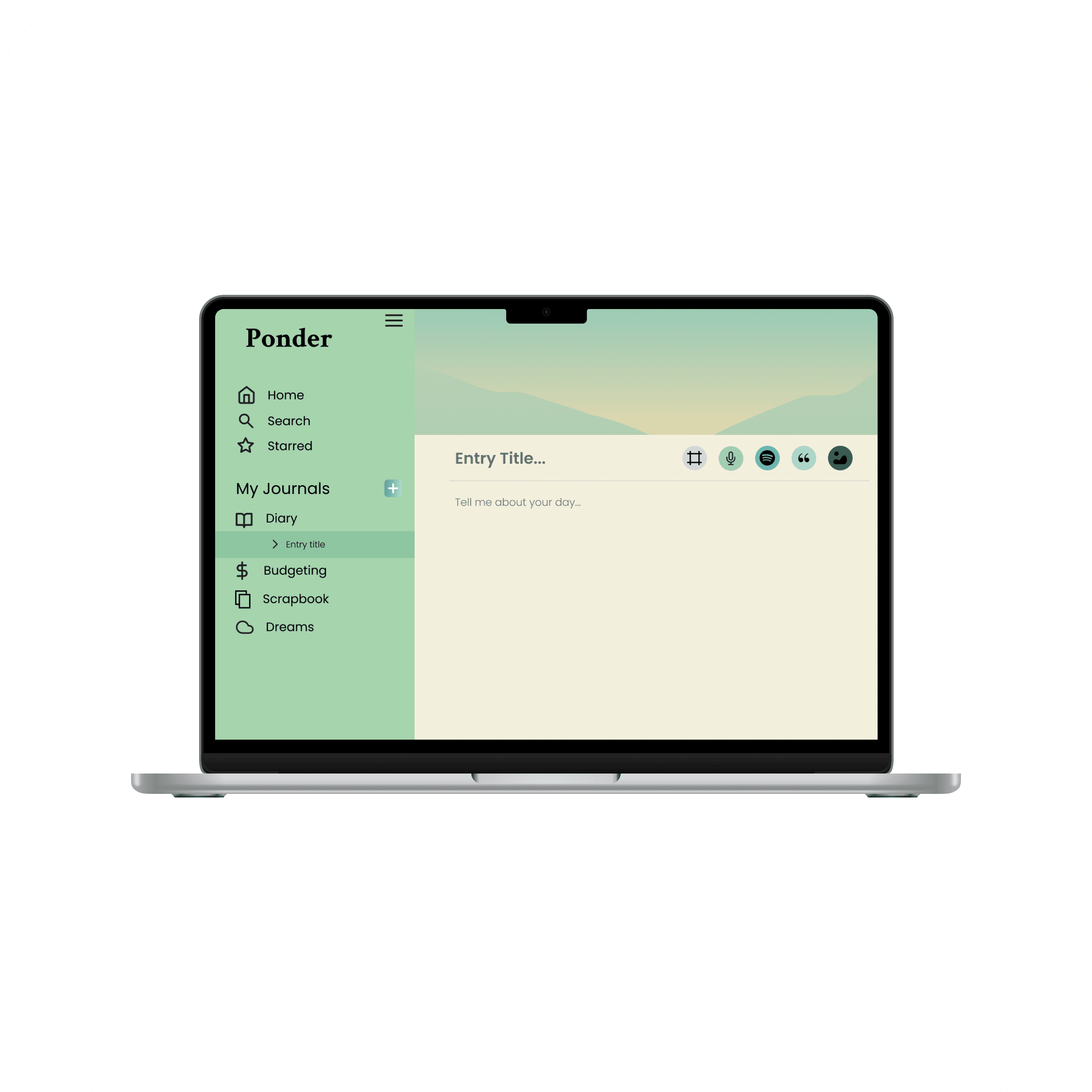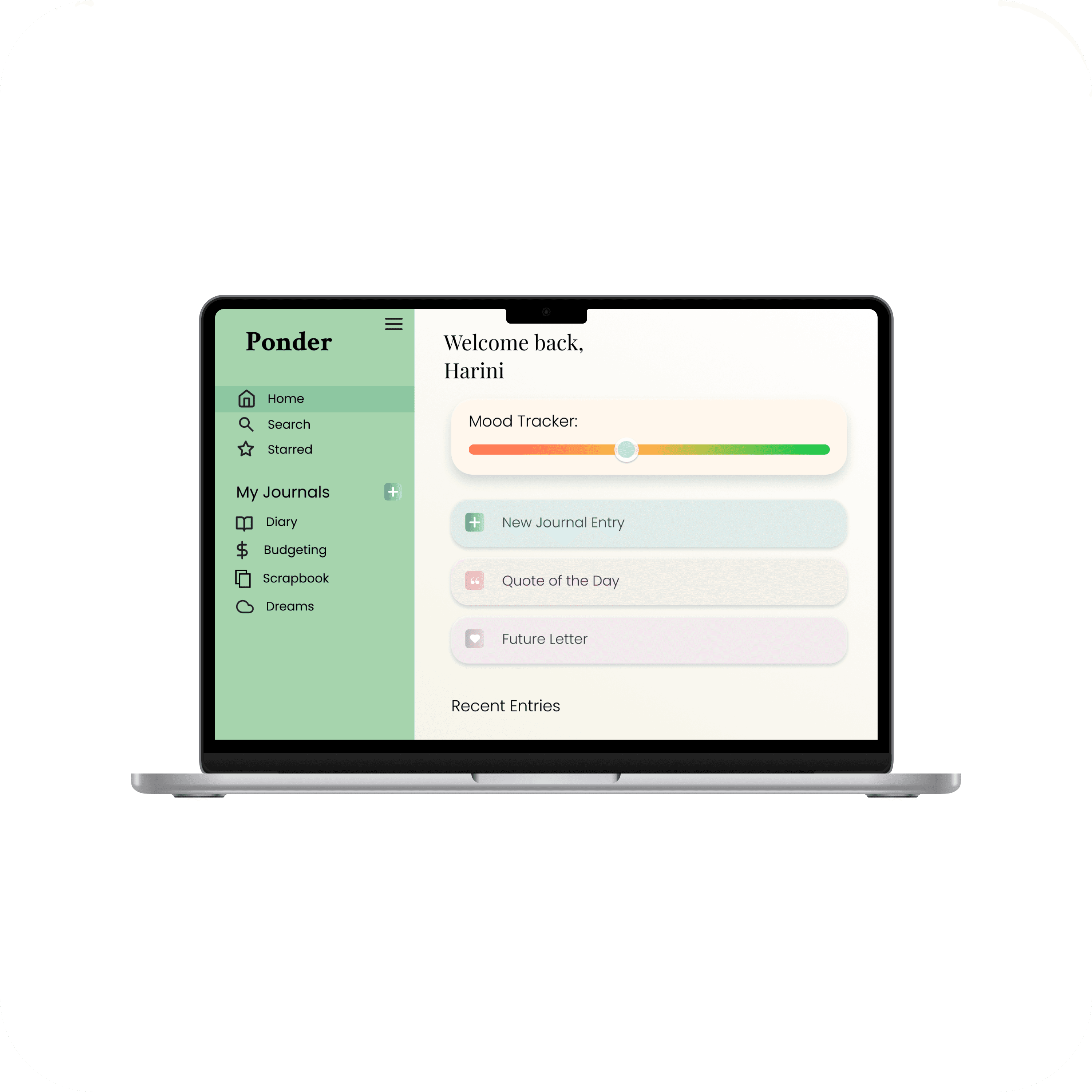 Digital journaling apps often prioritize functionality over emotional resonance, resulting in experiences that feel cold, cluttered, or creatively limiting. Ponder set out to reframe this, offering a reflective space that is visually soothing, emotionally rich, and creatively flexible.
